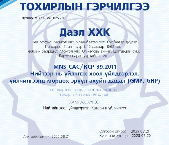MNS CAC/RCP 39:2001 Нийтээр нь үйлчлэх хоол үйлдвэрлэл, үйлчилгээнд мөрдөх эрүүл ахуйн дадал-Хүчинтэй