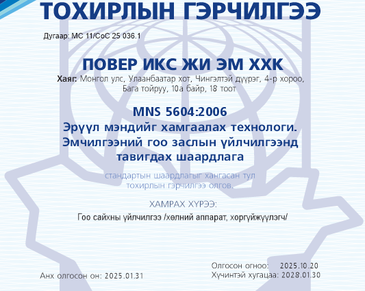 MNS 5604:2006 Эрүүл мэндийг хамгаалах технологи. Эмчилгээний гоо заслын үйлчилгээнд тавигдах шаардлага-Хүчинтэй